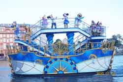 18:25〜18:35 船に乗ってミッキーたちのご挨拶 人が集まっていたのでそこで待ちました。 18:30からミッキーたちの船が来ました。