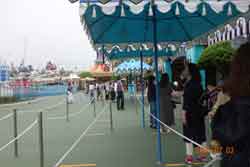 17:33 ミステリアスアイランドからハーバーに行くと 左側にソアリンの行列が